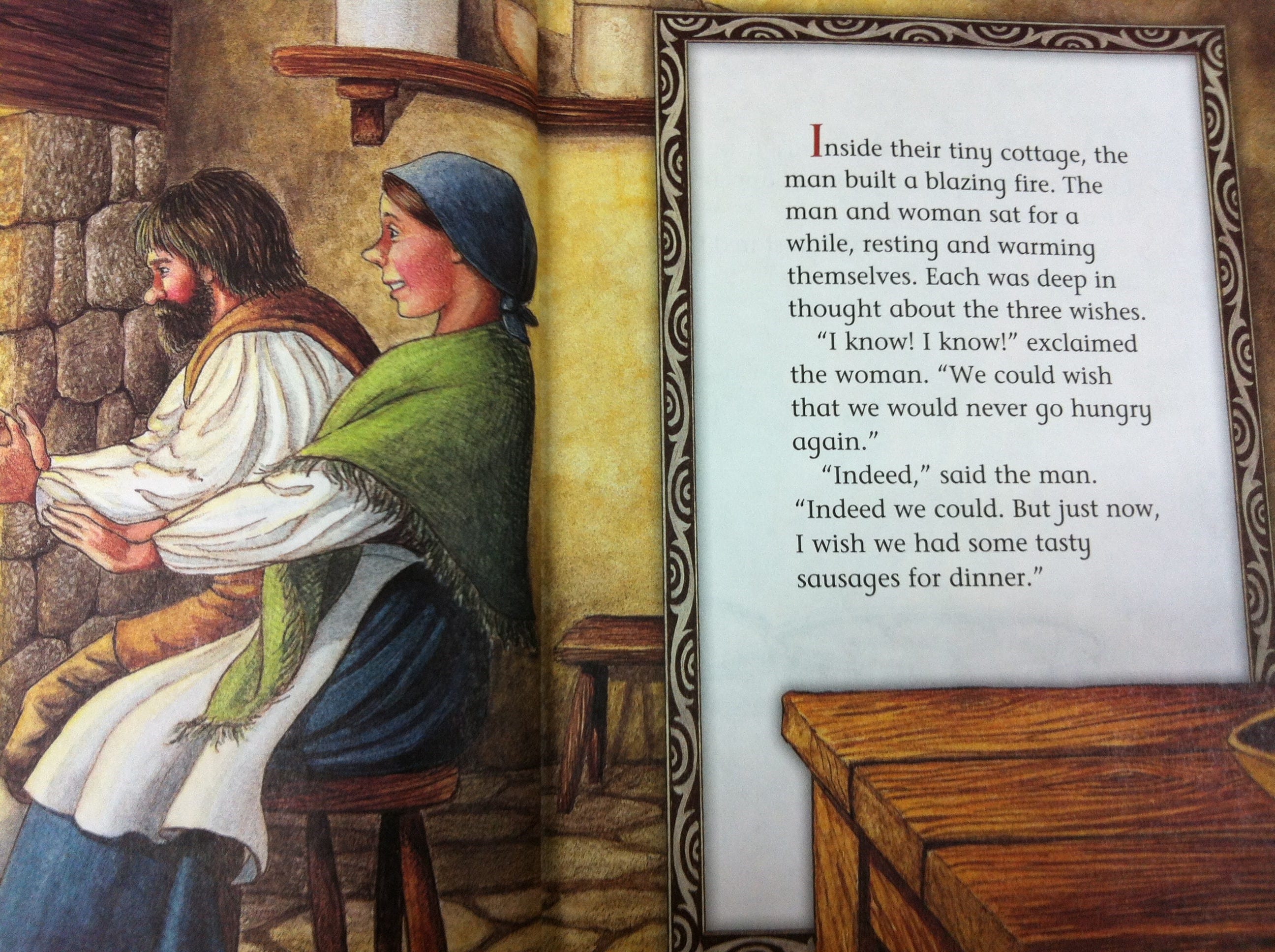 “I know! I know!” exclaimed the woman. “We could wish that we would never go hungry again.”