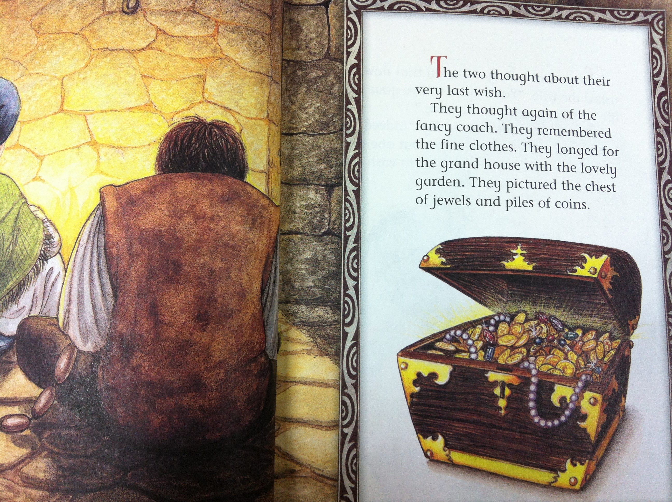 They talked on and on. There seemed to be no end to what they could wish. They thought of great chests of jewels and piles of gold coins. It could all be theirs for the asking.