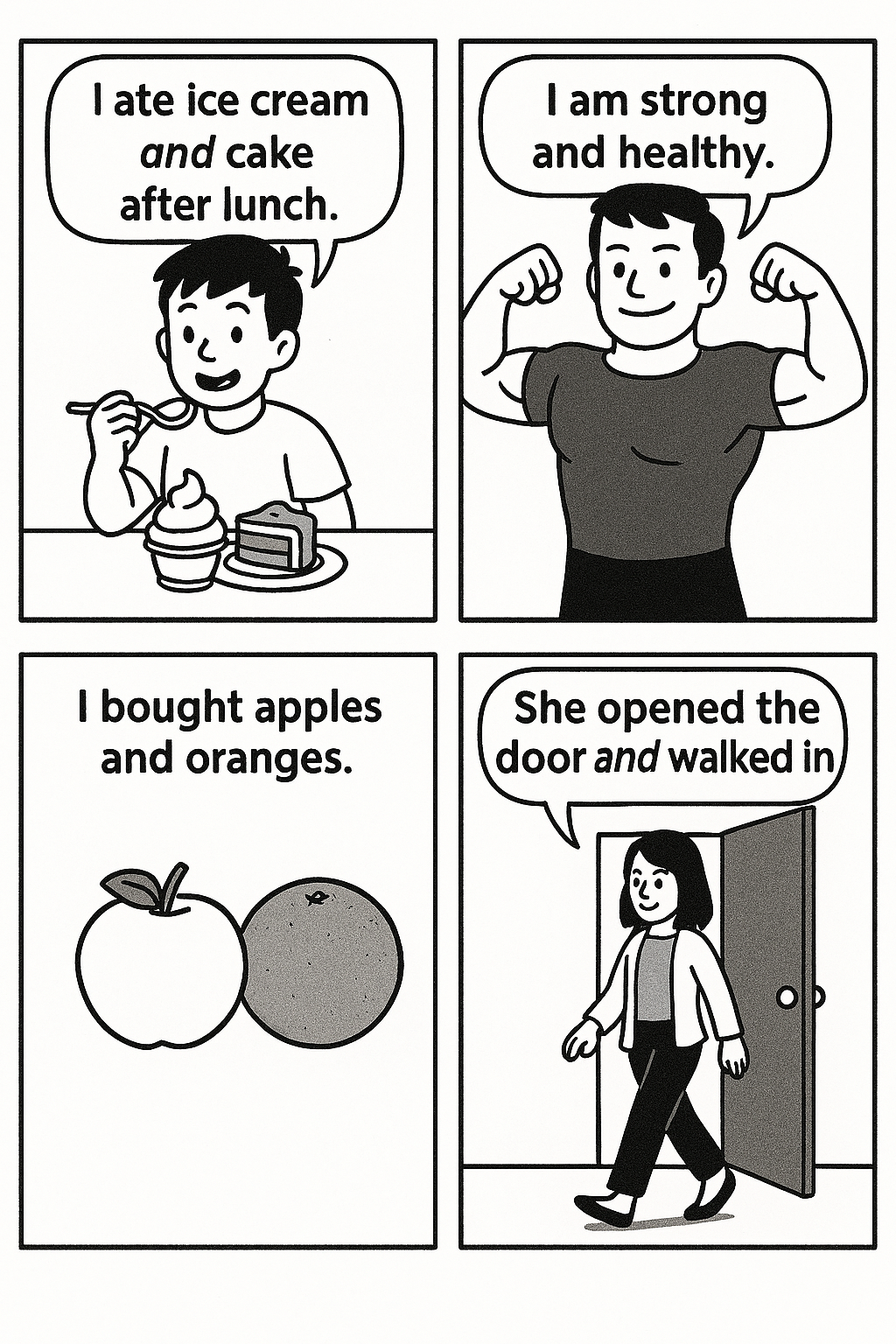 I bought apples and oranges. (명사 + 명사)