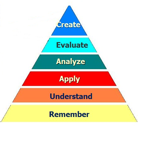오른쪽 그림, Bloom의 분류학을 조금 살펴봅시다.