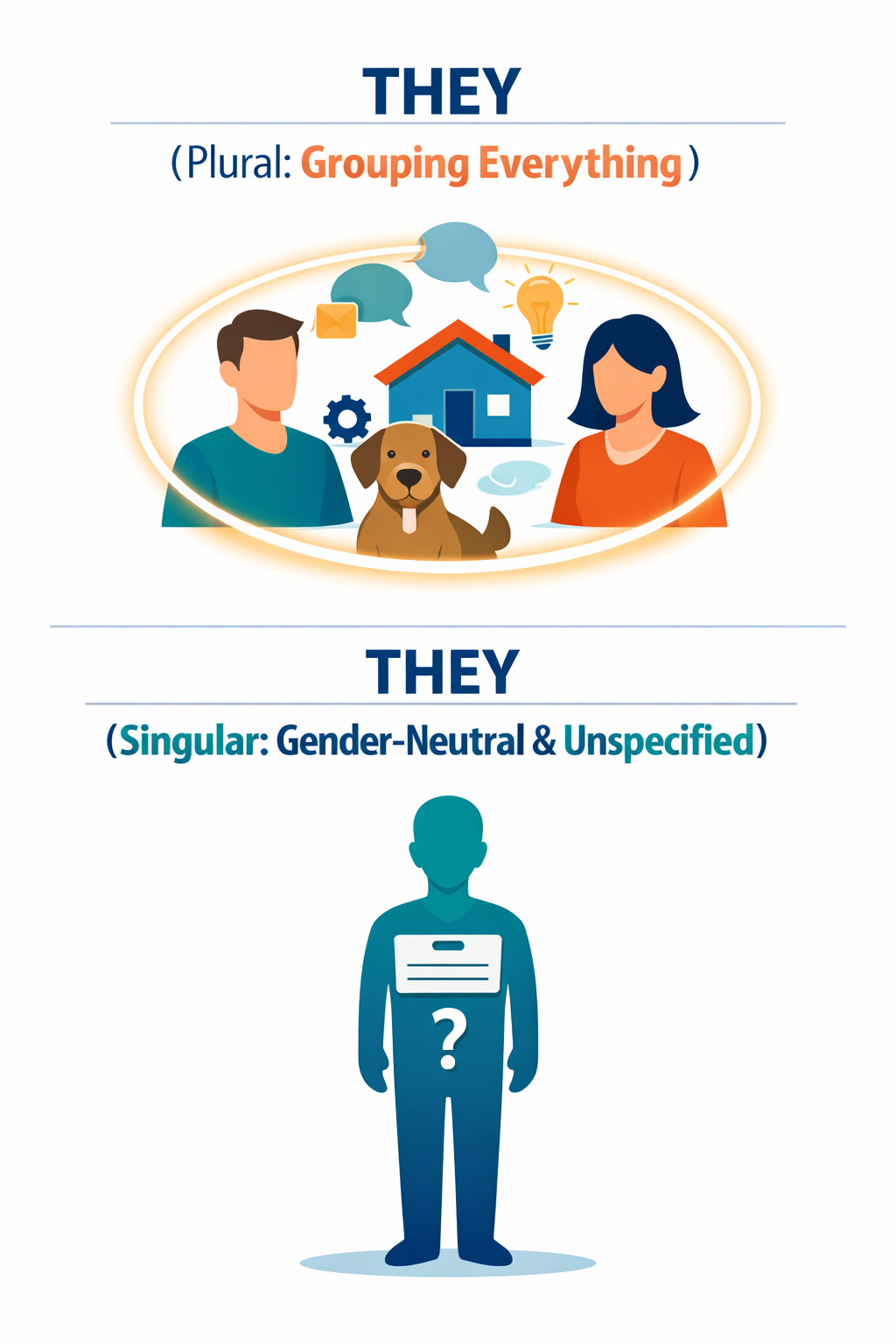 처럼 he or she를 쓰는 것이 바른 표현이라고 가르쳤습니다. 하지만 이 표현은 길고 불편하며, 성별을 굳이 드러내야 하는 문제도 있었습니다. 이미 셰익스피어와 제인 오스틴 시대부터 사람들은 everyone, someone 같은 말에 자연스럽게 they를 사용해 왔고, 최근 수십 년 동안 학술지와 공식 문서에서도 singular they가 표준처럼 쓰이고 있습니다. 그래서 지금은