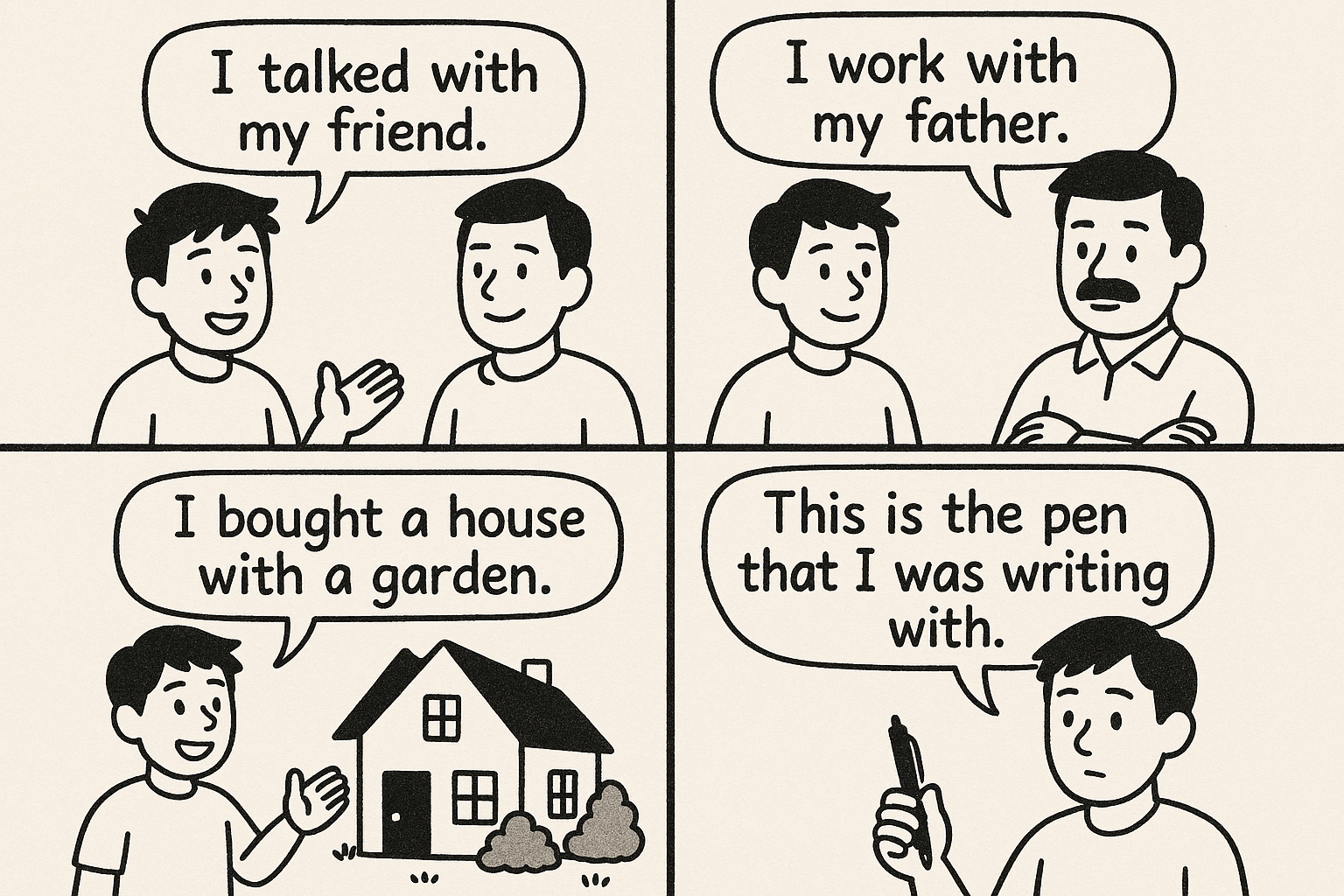 그리고 문장 끝에 with가 혼자 남아 있으면 당황하지 마세요. **“아, 짝꿍은 이미 문장 앞에 나가 있구나!”**라고 생각하면 됩니다.