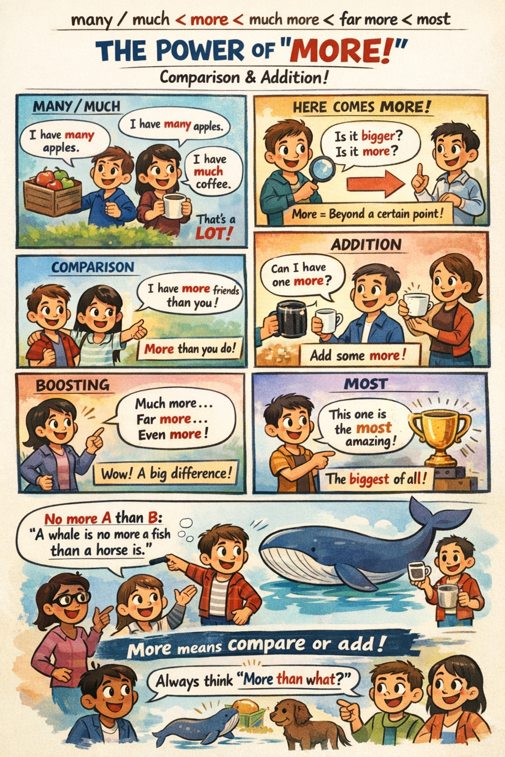 many / much < more < much more / far more / even more < most