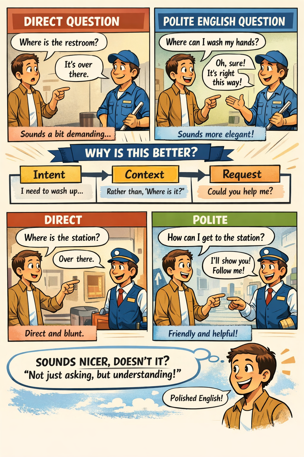 학교 문법에서 말하는 indirect question은 문장 구조 설명을 위한 이름일 뿐, 영어 화자가 실제로 “간접적으로 묻는다”고 느끼는 방식과는 거리가 멉니다. 영어에서 진짜 간접 질문이란,
